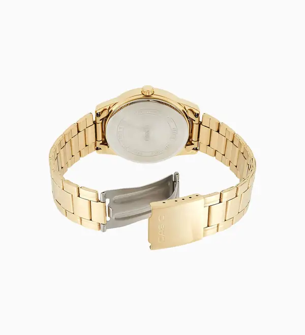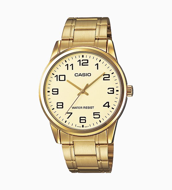 Casio #MTP-V001G-9B Men’s Standard Gold Tone Stainless Steel Easy Reader Watch Mineral Glass Water-Resistant Regular timekeeping